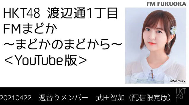 【動画】FM福岡「HKT48 渡辺通1丁目 FMまどか まどかのまどから YouTube版」週替りメンバー : 武田智加(配信限定版)(2021/4/22放送分)/ HKT48[公式] 2021年04月22日 カテゴリ:ラジオ mixiチェック 【【動画】FM福岡「HKT48 渡辺通1丁目 FMまどか まどかのまどから YouTube版」週替りメンバー : 武田智加(配信限定版)(2021/4/22放送分)/ HKT48[公式]】の続きを読む タグ :#HKT48#FMまどか#森保まどか#武田智加
